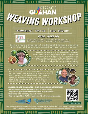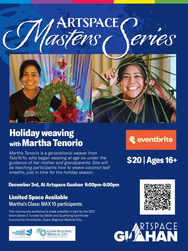 Join us on Dec 3rd, 6–8 PM at Artspace Guåhan for a fun Holiday Wreath Weaving Workshop with master weaver Martha Tenorio! 🌿🎀
